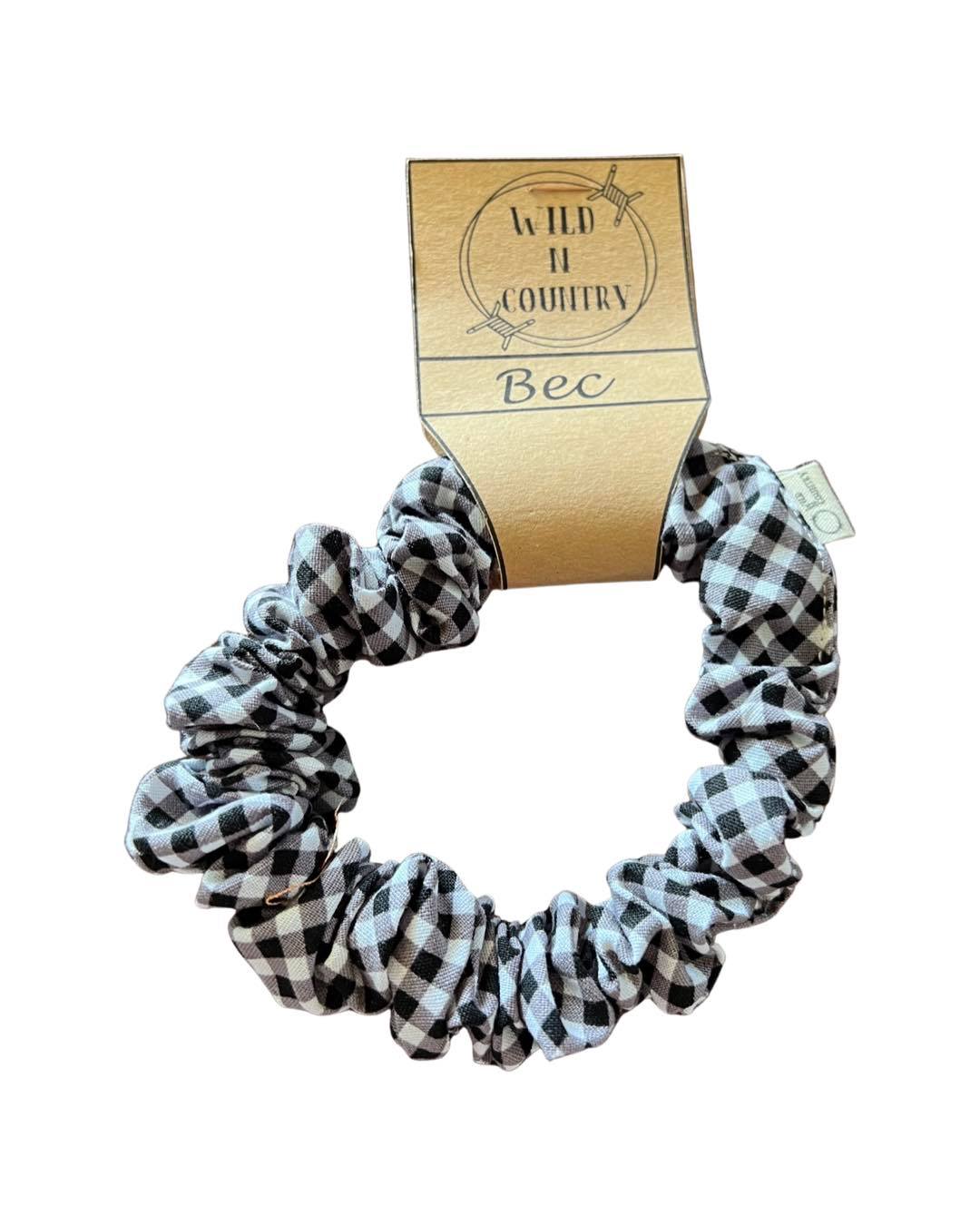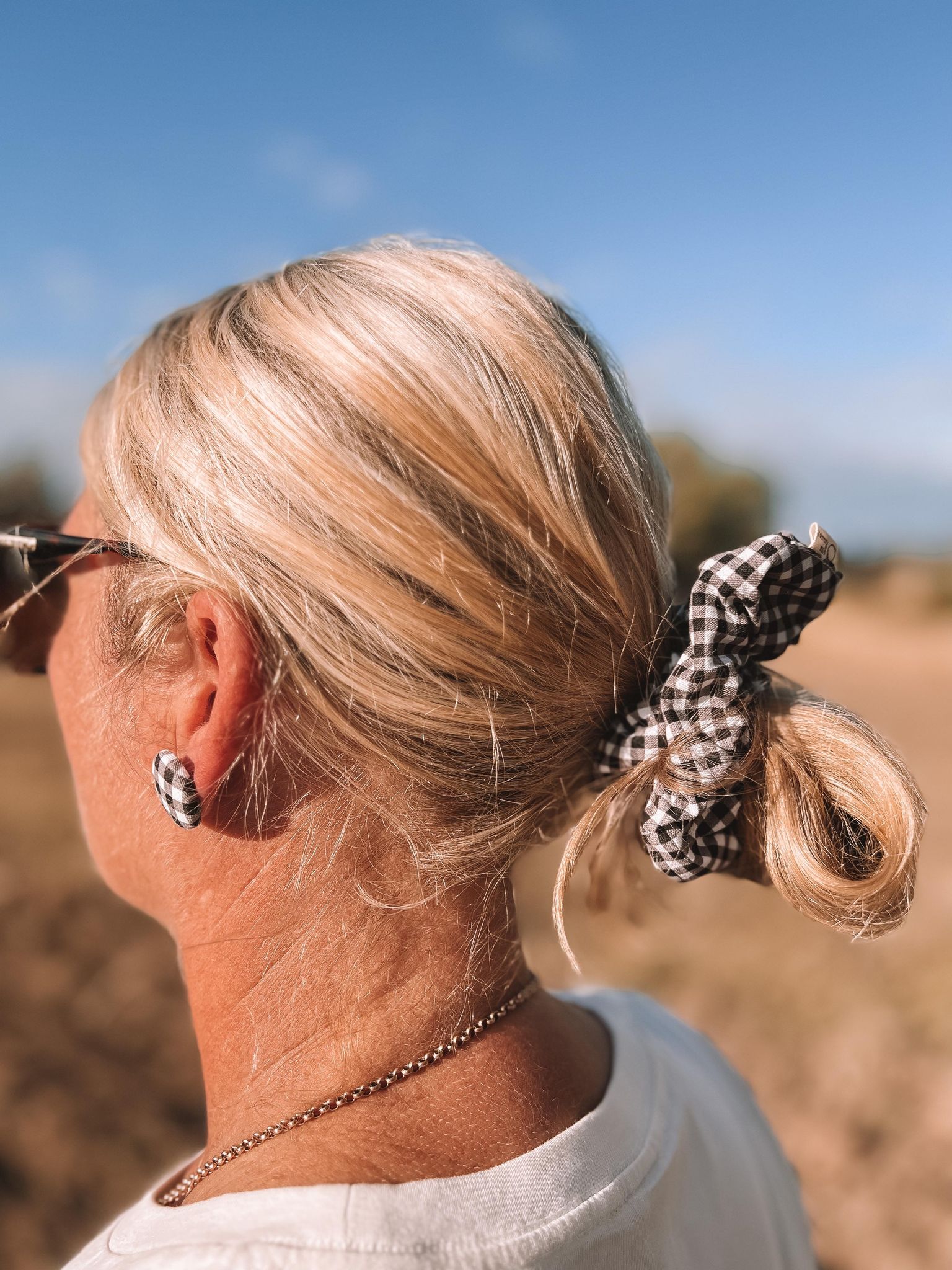 Black gingham scrunchies compliments any outfit, plus they beautifully match with the Bec Earrings!