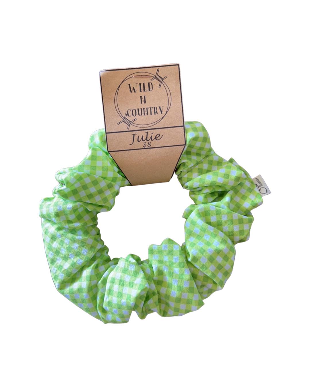 Lime gingham scrunchies compliments any outfit, plus they beautifully match with the Julie Earrings!