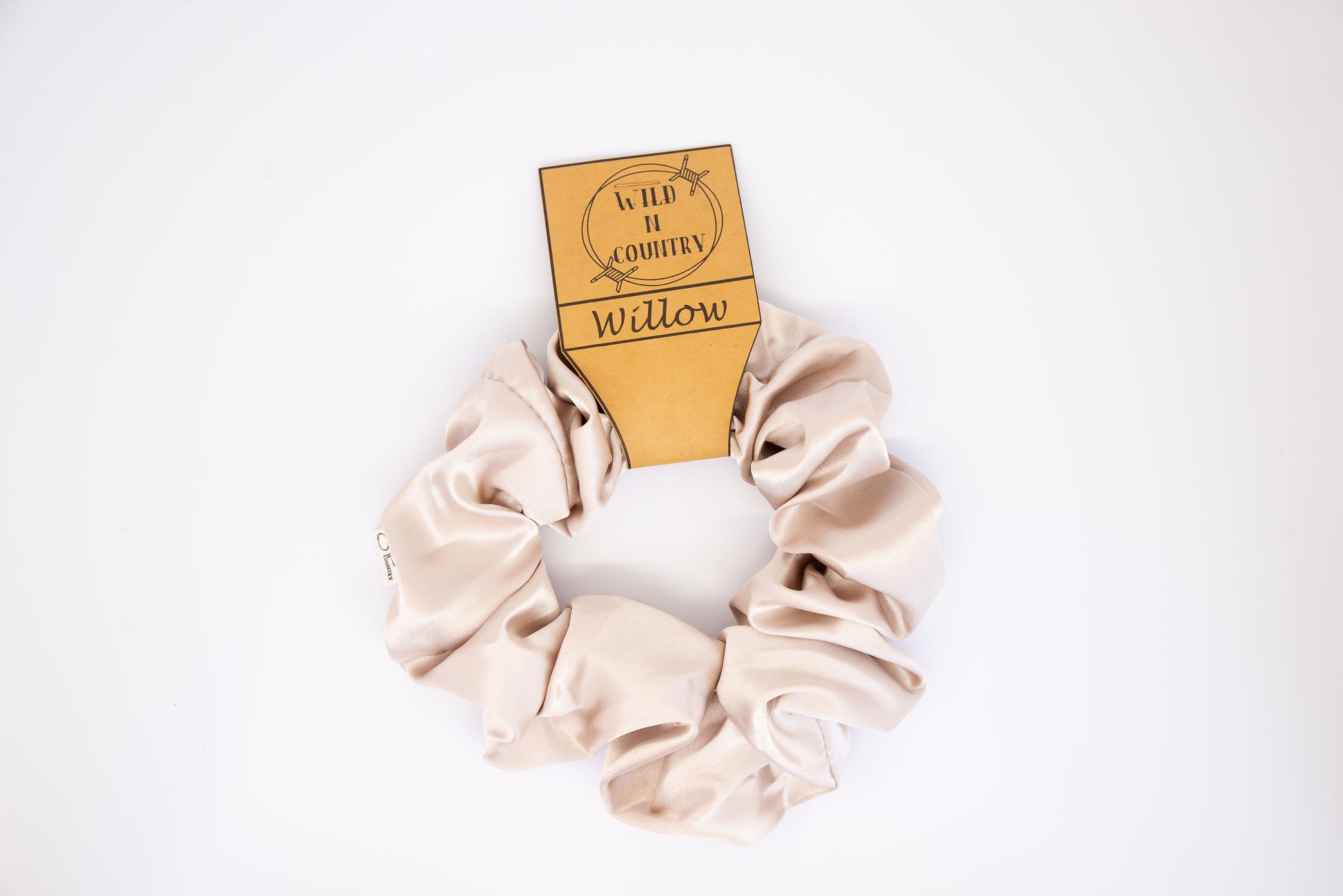- Two sizes; large is designed for a puffy look and small is designed for a sleek look. Both scrunchies will wrap around thick hair 3 times and thin hair 4 times